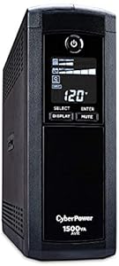 Size:1500VA / 900W | Pattern Name:Single A mini-tower UPS with line interactive topology, the CyberPower Intelligent LCD CP1500AVRLCD provides battery backup (using simulated sine wave output) and surge protection for desktop computers, workstations, networking devices, and home entertainment systems. The CP1500AVRLCD uses Automatic Voltage Regulation (AVR) to correct minor power fluctuations without switching to battery power, which extends battery life. AVR is essential in areas where power fluctuations occur frequently. The CP1500AVRLCD comes with a three-year warranty (including coverage of batteries) Battery Backup Supplies power long enough for equipment to properly shut down when utility power fails. Helps prevent loss of data and minimizes the component stress caused by a hard shutdown. Surge Protection Diverts excess voltage away from sensitive electronic equipment during an AC power surge or power spike to prevent damage. Data Line Protection Prevents power surges that travel through telephone, coaxial, and Ethernet lines from causing damage to electronics. Line Interactive Topology Exists when a line interactive UPS has an auto transformer that regulates low voltages (e.g., brownouts) and over voltages (e.g., spikes) without having to switch to battery. Automatic Voltage Regulation (AVR) Provides clean, consistent AC power by automatically regulating low voltages and over voltages, within defined tolerances, when incoming utility power has minor fluctuations. Simulated Sine Wave Output Uses pulse wave modulation to generate a stepped, approximated sine wave to supply cost-effective battery backup power for equipment that does not require sine wave output. GreenPower UPS Bypass design Is a patented design that allows utility power to bypass the UPS transformer, when AC power is stable, which reduces energy consumption, noise, and heat buildup. Multi-function LCD panel displays immediate, detailed information on the UPS battery and power conditions, alerting users to potential problems before they can affect critical equipment and cause downtime. Ultra quiet design minimizes noise during operation for a quieter work environment. PowerPanel personal software provides a user-friendly dashboard interface for controlling and monitoring the UPS. Free software download available here. Energy Star: This model is an Energy Star certified Uninterruptible Power Supply (UPS) system. Energy Star is the trusted, government-backed symbol for energy-efficient products and practices that help save money and protect the environment. Automatic voltage regulation: Yes – single boost (10%).